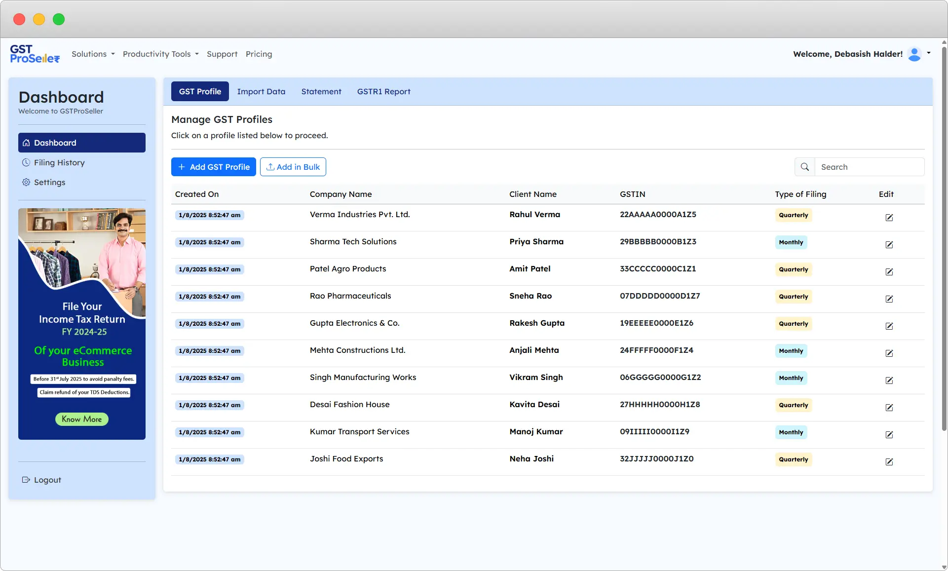 Join a thriving community of 10,000+ smart eCommerce sellers and accounting professionals who trust GSTProSeller to file their monthly GST returns accurately and effortlessly.