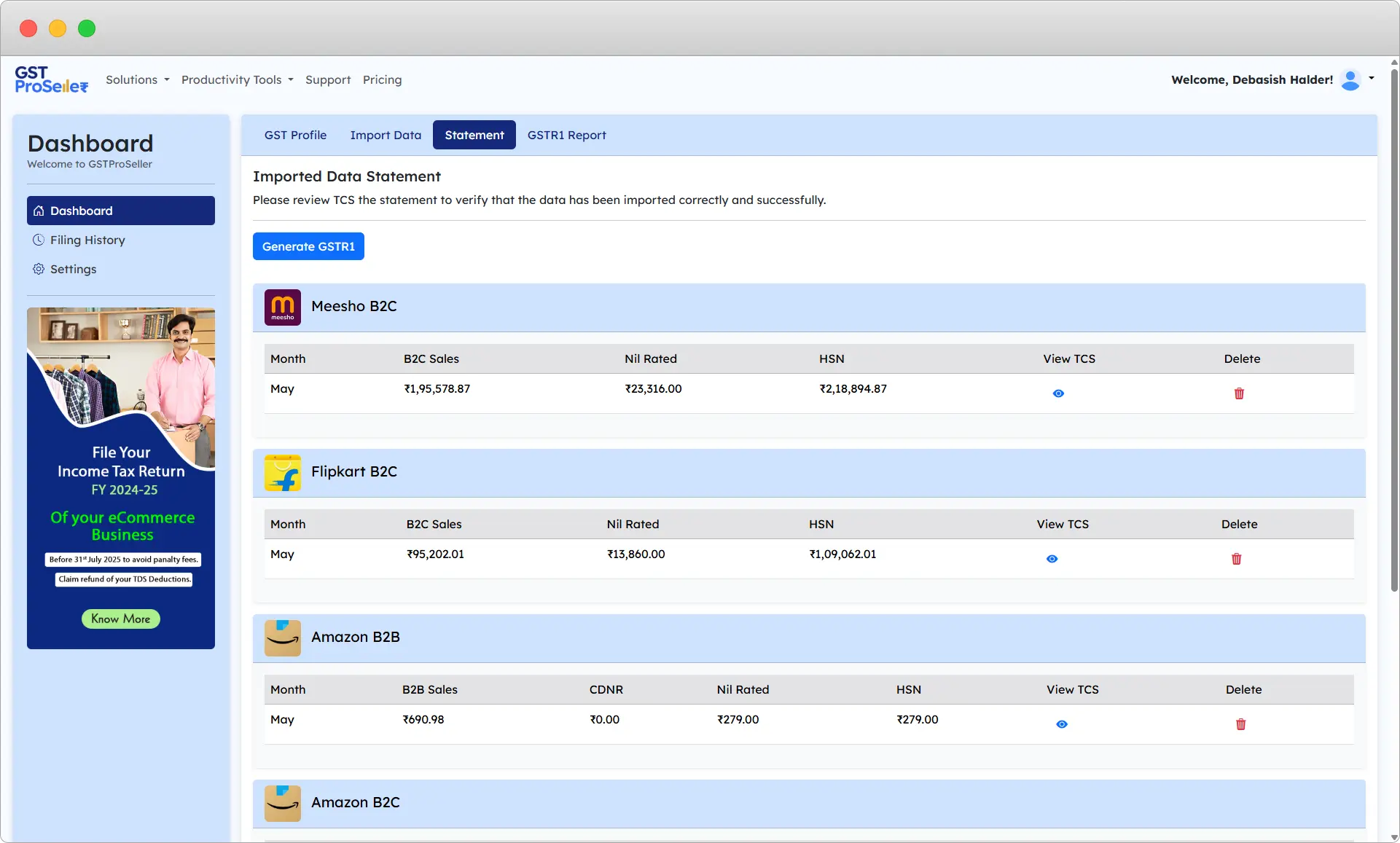 Generate the GSTR-1 and cross-check the data with TCS records.